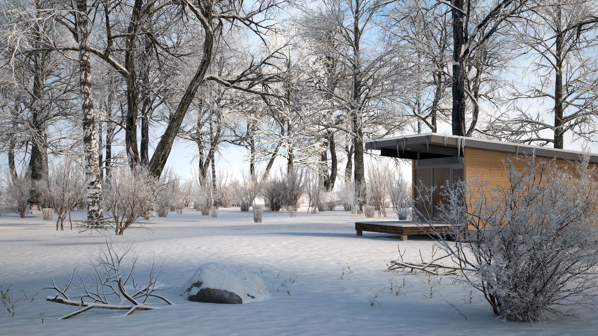 The goal of this rendering set was to demonstrate the current level of landscaping possible with our renderings. In an attempt to show some diversity we created several seasons for the same image. Photoshop was minimally used to modify saturation and exposure.