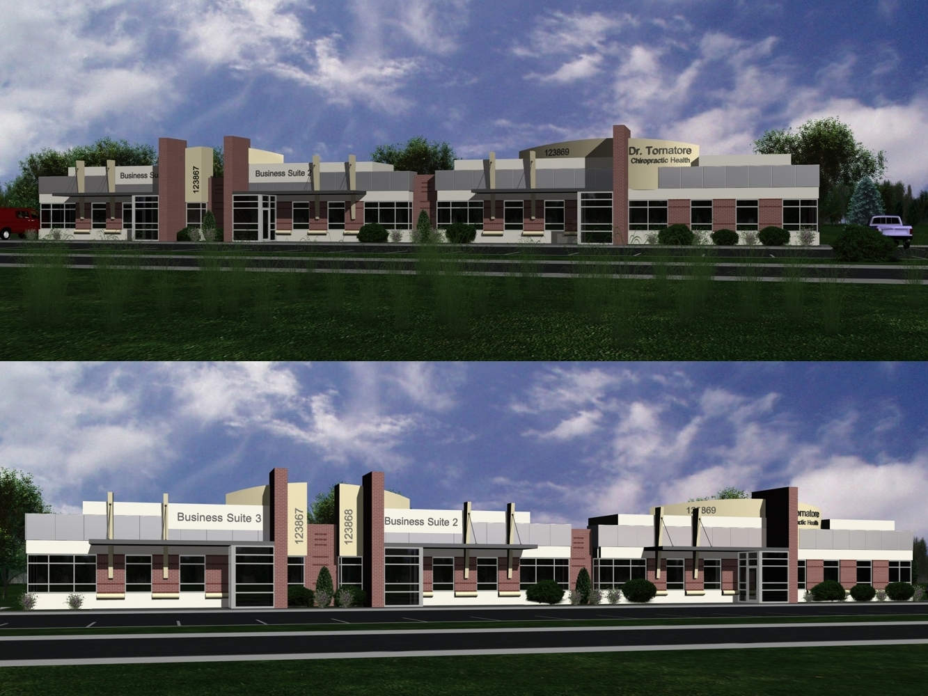 The client wanted to see a few potential options for a Chiropractic main office with additional business offices for tenants.